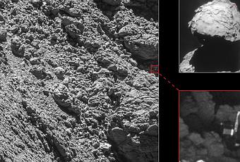 Ubicación de Philae en el cometa 67P. Crédito: ESA/Rosetta/MPS for OSIRIS Team MPS/UPD/LAM/IAA/SSO/INTA/UPM/DASP/IDA; ESA/Rosetta/NavCam.
