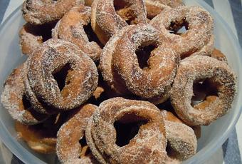 - Sacamos, escurrimos en el papel absorbente y enseguida las untamos en el azúcar con canela para que se pegue bien.