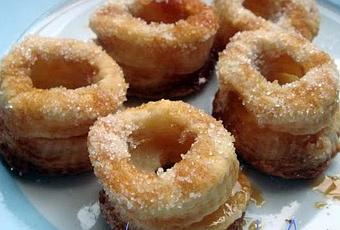 Deliciosa receta del blog de Cristina (Kanela y limón) que seguro que tod@s conocéis, y si no es así, no os lo podéis perder. Gracias!- Estirar dos láminas de hojaldre. Pintar una de ellas con mantequilla derretida y colocar la otra encima. Cortar la masa con dos formas redondas (una más pequeña que otra) y hornear a 200ºC hasta que se empiecen a dorar.