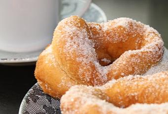 Ponemos una sartén con aceite muy caliente y vamos friendo las rosquillas. Las pondremos después en apel absorvente y espolvorearemos de azúcar.
