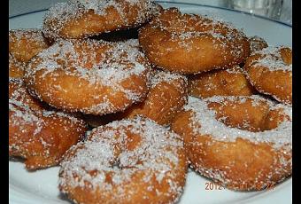 Poner en un recipiente, la harina con el aceite y mezclamos bien a continuación agregamos el zumo de naranja y los huevos enteros, sin dejar de mezclar la masa. A continuación el sobre de levadura, la ralladura de naranja y la pizca de sal.