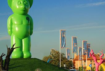las ciudades y pueblos españoles, aparece de manera reiterada, desde hace poco más de dos décadas, una singular combinación constituida por la rotonda y el conjunto monumental que se ha convertido en auténtica metáfora de los nuevos tiempos, de la nueva cultura y de las nuevas formas. En la difícil lectura de estos espacios urbanos difusos se ha llegado a atribuir un sentido relevante a estas creaciones inicialmente sólo funcionales pero pronto cargadas de imperativos hedonistas, muy propios de la cultura actual. No se trata de una cuestión marginal. Las rotondas son muy numerosas: la Comunidad de Madrid contaba con 2.700 en el 2008, distribuidas en vías urbanas e interurbanas, siendo la provincia con mayor número, casi 1.000 más que Barcelona. En España la cifra ascendía a 24.000 en esas fechas2. Se trata de un fenómeno reciente e invasivo que parece no tener límites. Además ocupan mucho suelo, frente al espacio reducido de las encrucijadas convencionales. Mueven, por otra parte, más cantidad de dinero en su construcción, en su ornamentación y en su mantenimiento. Sobre todo, afectan directamente a una población muy numerosa, obligada a usarlas y contemplarlas fugazmente mientras transitan. Frente a su aceptación generalizada, especialistas de campos diversos están ya denunciando su carácter banal y, por ello mismo, el peligro de su despliegue disparatado e improcedente. Si se analiza críticamente su propagación, se manifiestan entonces como auténticas cortinas de humo que ocultan un paisaje urbano que en la actualidad se empobrece y se estandariza. Intereses económicos, políticos y mediáticos confluyen en encumbrar estos espacios dándoles una trascendencia que no deberían tener: es un producto nuevo, que pueden vender bien y convertirlo fácilmente en exaltación de la cultura o hito simbólico de los lugares. Resulta curioso además que se trate de un fenómeno europeo que sólo en fechas muy recientes ha cruzado el océano para comenzar a desplegarse en Estados Unidos. De allí sin embargo proceden las nuevas piezas urbanas que pueden asignarse a la posmodernidad. Están allí los paisajes canónicos, en las nuevas exópolis, en los espacios difusos, fragmentados y segregados de las periferias, donde persisten vacíos junto a superficies urbanas especializadas, homogéneas socialmente y estandarizadas. En esos territorios es donde aparece por ejemplo el centro comercial, en la confluencia de viales rápidos, autentico emblema de la época, referencia de sus formas arquitectónicas, de las nuevas actitudes y de la prosperidad urbana. En los márgenes de la ciudad española destaca sin embargo, en el nuevo paisaje, en el sprawlscape, la rotonda ornamentada con una enorme escultura. La primera que se construye en Estados Unidos data de 1990 y aún hoy existen menos de 2.000 en todo el país (RoundaboutsUSA, 2009). En contraste, en 2008, había cerca de 30.000 rotondas en Francia (carrefour giratoire o giratoire) y más de 10.000 en Gran Bretaña(roundabout). La dinámica de expansión de estos dos productos ha sido pues inversa, lo cual puede considerarse como una alegoría de las peculiaridades de una y otra cultura. El centro comercial y la rotonda ornamentada son distintivos de los nuevos tiempos, a los dos se les pueden asociar además los valores que las sociedades que los construyen están adoptando: ambas son reverso de la cultura ciudadana y negación del espacio público.Parece que por fin Europa es capaz de crear sus propios espacios basura, un producto vulgar cargado sin embargo de grandilocuencia que podría añadirse a los otros símbolos de los territorios urbanos contemporáneos evidenciados por López de Lucio (2006) certeramente. La clave de la crítica es la parafernalia que envuelve esta pieza y su tratamiento. Más allá de su estricta función, se ha llegado a asimilar la combinación de escultura y rotonda al binomio arte público y espacio público que, sin embargo, constituye una de las mejores incorporaciones a las políticas locales y ha demostrado tener importantes repercusiones tanto en el diseño de nuevas áreas urbanas como en la regeneración de ámbitos marginales.
