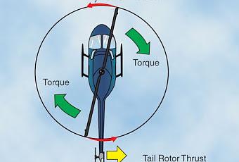 Cuando el rotor superior de un helicóptero gira, genera sobre este una fuerza que lo hace . Si esta fuerza no fuera compensada por el girar en sentido contrario rotor de cola, la nave giraría acelerando, progresivamente, en sentido opuesto al rotor principal.