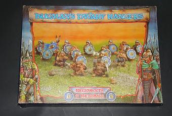 Este fue el segundo regimiento de los Bugman Rangers que Games Workshop comercializó. La fecha exacta de comercialización de esta caja no la conozco pero fue durante 1986. Todos los enanos de esta época fueron diseñados por Alan y Michael Perry y éstos no fueron distintos.Esta fue la primera caja de regimiento que compré de este nueva edición y fue por error. realmente había pedido unos enanos del plástico de Drastik Plastik y por error me mandaron este caja con la misma cantidad de enanos que había pedido en plástico. Es precio era distinto pero Games Workshop aceptó el error y no me pidió su devolución.