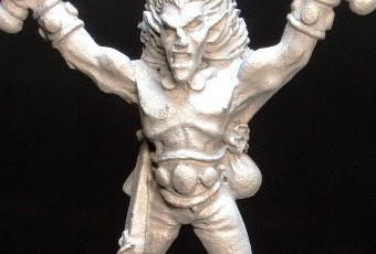 Pensé que ya no tenía la miniatura de Glam en el regimiento de Skarloc puesto que la había utilizado como jinete para un águila imitando al que hizo Mike McVey en su día. Pues buscando en la caja donde tengo almacenados los Elfos Silvanos he encontrado que en su momento compré una figura suelta para tener completo el regimiento.La figura fue diseñada por Jes Goodwin (pose que usaría más tarde para otro bailarín guerrero para Warhammer Quest). para la caja RRD4 - Skarloc's Wood Elf Archer.