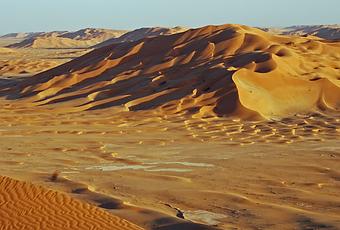 Su nombre significa en árabe “lugar vacío”, una descripción bastante exacta de lo que puede parecer Rub al-Jali en una visión superficial, una inmensa nada de arena en el que ni siquiera los beduinos se atrevían a entrar. La única forma de atravesarlo era por una ruta comercial, sólo frecuentada por camellos, tan antigua que es anterior a nuestra época y que discurría uniendo pequeñas poblaciones tribales que sobrevivían en las proximidades de los escasos oasis en los que era posible encontrar agua… hasta que se descubrió el petróleo.