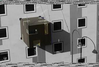 En colaboración con el ingeniero Thomas Beck, el artista colgó mediante cables de acero un contenedor habitable de la fachada del número 14 de la calle Federkiel Stiftung/Halle, en Leipzig (Colonia, Cologne, Germany, 2004-2005), dentro de la exposición “Xtreme Houses”.