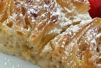 La tarta es bastante fácil de hacer, a pesar que hay que trabajar con las finas hojas de masa filo, algo un poquito complicado, ya que, como es tan fina, se rompe fácilmente.