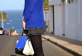 Esta vez lo llevé con jersey azul del año pasado con el bolso que les enseñé en este post. Con un zapato de tacón, camisa y un collar llamativo seguro que me resuelve algún look de estas Navidades.