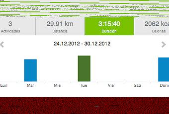 Martes 25: Con el cuerpo repleto de cochifrito y otras variedades culinarias... ufff!!! Mal terminamos el año... o bien, claro!!!11.11 km1h:00:12"Jueves 27: Caminata. Esta semana fin de año esto va de pena.6.4 km1h:10:45Domingo 30: No termino el año running muy bien. Esta semana es la segunda salida que hago pero bueno, disfruté de estos últimos kms del año en el Cerro de los Ángeles. Me costó subir, me dejé en el camino el cochifrito y los alcoholes... pero como siempre mereció la pena. Mañana preveo San Silvestre... a ver cómo me encuentro de ánimos y fuerzas....12.4 km1h:05:23Total kms hechos esta semana, del 24 al 30 de diciembre, ha sido de 29.91 km a unos ritmos más que tranquilos.