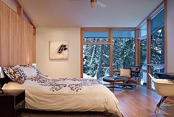 Sus visuales son unicas y su mantenimiento casi nulo ya que todo el interior es madera con tratamiento. Cercana a un lago y con un bosque que luce increible en el invierno es una casa no permanente de gran diseno.