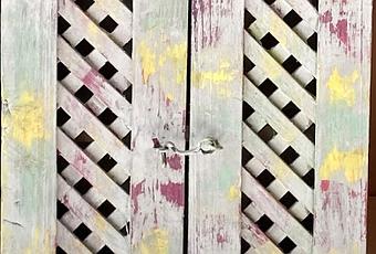 A la hora de enfrentarnos al exterior del mueblecito, el arrebato shabby fue en aumento, y se materializó en estos detalles en decoupage, tanto abajo...