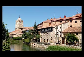 Apacible y encantador pueblecito medieval, Aguilar de Campoo, (centro de la comarca de Tierra de Campos) aparece de recia traza románica, como lo demuestra su colegiata de Santa María la Real que encabeza su Plaza Mayor, en torno a la cual se despliegan tiendas y cafés al abrigo de sus amplios soportales, que rematancoquetas galerías acristaladas que se miran entre sí y miden el silencio en el tañido amortiguado de las humildes, discretas y dulces campanas de la iglesia en la tarde infinita.