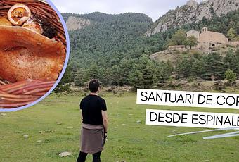 Para acceder al santuario cruzamos los prados de Corbera hacia la derecha hasta enlazar con la pista forestal que conduce directamente al complejo religioso.El Santuari de Corbera está situado a 1.424 metros de altitud, en el extremo oriental del municipio, sobre el vecindario de Espinalbet y al pie de la Serra de Corbera. Se trata de un conjunto de edificios adosados en torno a la iglesia, cuya actual construcción barroca data del siglo XVIII (en uno de los muros se conserva grabado el año 1721).