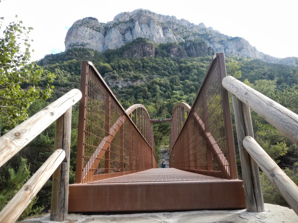 Empezamos en el puente de Santa Ana. Tras pasar el puente seguimos a mano izquierda una pista en buen estado que marcha paralela al río Subordán. Seguimos por la senda de los Ganchos, un antiguo sendero de contrabandistas, ya que era utilizado por contrabandistas a la hora de cruzar a Francia ya que este camino era menos vigilado. Llegamos al barranco de Agüerri que cruzamos gracias a un gran puente metálico.