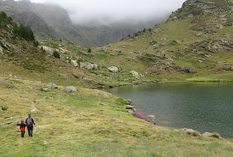Para no dejar atrás el Estany Primer, giramos a la derecha en este punto y comenzamos una bajada constante hasta la base del lago. Al llegar, lo rodeamos por la izquierda para enlazar con el sendero que lleva al Estany del Mig.