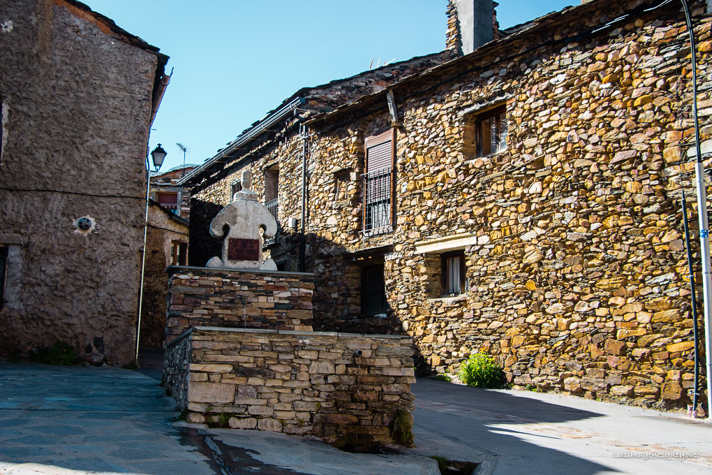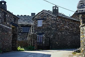 Ya dentro del pueblo, vemos las casas construidas con pizarra, que por esta zona, tiene tintes dorados que la hace brillar al sol.