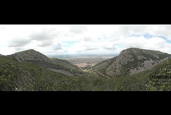 Continuamos por un sendero entre bosque mediterráneo que nos adentra en el Valle de los Corraletes, que abandonamos temporalmente para subir a la antena del Peñón del Carrascal desde donde hay unas espectaculares vista de Hornachos y el entorno desde este lugar se pueden observar los impresionantes crestones cuarcíticos, en muchos de los abrigos que se pueden ver, se pueden ver pinturas rupestres. Continuamos la senda que nos conduce hacia la umbría entre encinas, alcornoques, coscojas, jaras, enebros, retamas, madroños, tomillo, romero y cantueso, un muy bonito tramo, para volver de nuevo al Valle de los Corraletes, hasta la casa de Los Corraletes donde hacemos una parada y desde donde hay una maravillosa vista del valle.