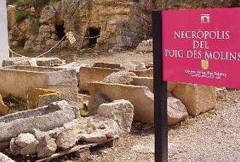 Bajo el suelo de Puig de Molins se esconden unas 3.000 cámaras subterráneas o hipogeos, muchas de ellas cubiertas por la vegetación total o parcialmente. Aunque solo 340 son visibles desde el exterior. Por eso es preciso recorrer el yacimiento siguiendo el sendero señalizado. También de interés para el viajero resulta visitar, aquí, el Museo Monográfico de Puig des Molins, que se encuentra en la llamada Vía Romana, que sigue el antiguo camino hacia Figueretes. Sus fondos son de gran importancia.