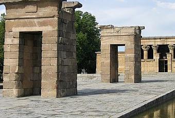 Madrid cuenta con un auténtico templo egipcio trasladado piedra a piedra desde el Alto Egipto hasta el Parque del Oeste, cerca de la plaza de España, en el lugar que antaño ocupó el histórico y sangriento cuartel de la Montaña: el Templo de Debod. La amenaza de las aguas de la presa egipcia de Assuan hizo que el gobierno del país africano regalara la obra arquitectónica en 1968 como reconocimiento por la ayuda española en el estudio y salvamento de los templos de Nubia y que se ubicase con esmero en Madrid. El templo, erigido en el año 200 a.C. y decorado con posterioridad, se encontraba en la aldea de Debod, a orillas del Nilo. Está dedicado a Amón de Debod y a la diosa Isis.