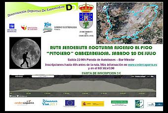 Esta Ruta Senderista Nocturna, Ascenso al Pico "Pitolero", partirá desde el vecino municipio de Cabezabellosa el próximo Sábado 20 de Julio. Una oportunidad para rodearte de los sonidos de la noche, el cielo estrellado, la brisa de la montaña... ¿Te imaginas? Una actividad distinta, muy diferente y sana. No lo pienses más y apúntate.