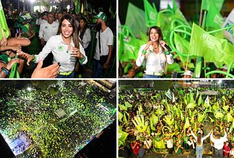 En un ambiente festivo, reforzado por banderas, globos y pancartas, la candidata hizo un llamado a la población para que este 2 de junio voten masivamente por el Partido Verde, reafirmando así su apoyo al proyecto que ha cambiado la gestión pública en la región.