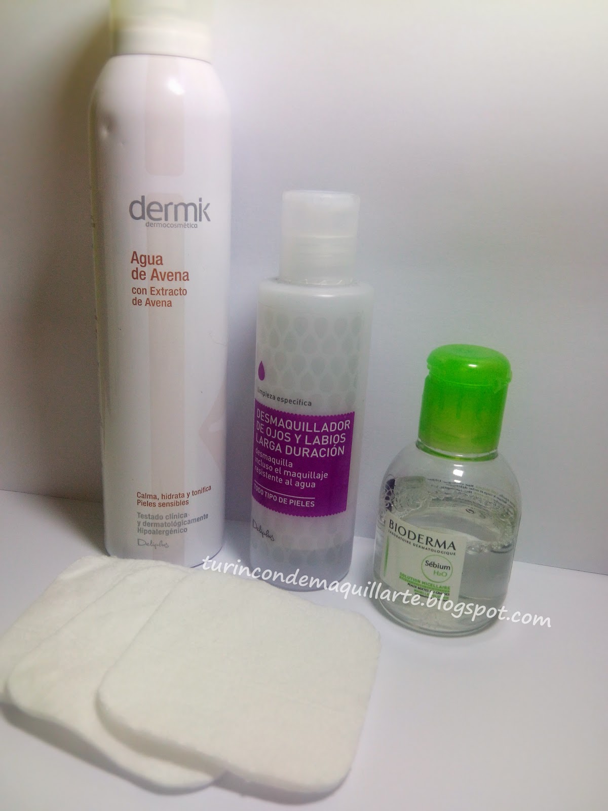 - Tonifico la piel con el Agua de Avena de Dermik ( Deliplus ), un producto indispensable para mi, y con un disco desmaquillante retiro los restos de maquillaje que me han podido quedar.