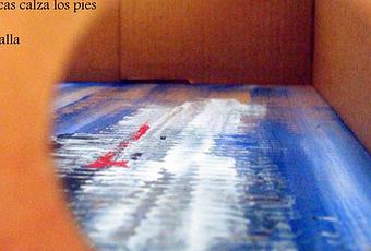 Pilar Escota, coge la caja de zapatillas "zapas canalla" y Susana Vacas, calza los pies "pieses canalla". Sus obras y juegos visuales con acrílico y óleo, textura, dibujo y recorte se exponen en móviles o peanas; busca y rebusca entre pies, piese, caja, zapas... Opinión personal: Música en directo, amigos y picoteo para acoger a estas artistas. Un curioso proyecto llevado a cabo entre dos amigas: el arte se integra en el espacio expositor y con unas sencillas cajas de zapatillas han mezclado colores, texturas, imágenes y figuras consiguiendo crear piezas exclusivas.