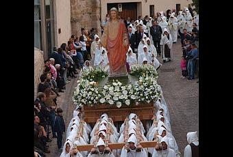 Hábito: Túnica con capucha de estameña blanca. Portan vara de mano rematada en farol.