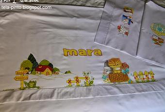 Ya pinté una sábana para la cuna de Mara, pero cuando crezca y salga de su cuna para pasar a dormir a la cama, tendrá unas sábanas llenas de color, que inspiren sus sueños.