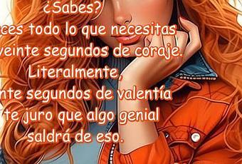 La frase bonita de hoy. ¿Sabes? A veces todo lo que necesitas son veinte segundos de coraje. Literalmente, veinte segundos de valentía y te juro que algo genial saldrá de eso.