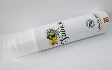 El primer producto que os enseño, se trata de esta crema corporal, que se presenta en un envase alargado, de plástico blanco, bastante fuerte y compacto, y que contiene 200 ml de cantidad. Le acompaña un dispensador, tipo pompa, muy cómodo, práctico e higiénico. Tiene una textura cremosita, super suave y agradable, la cual, se extiende rápidamente, dejando la piel hidratada y con un tacto maravilloso, bastantes horas. Aunque lo que más me gusta de ella, es que no aporta ninguna sensación pringosa, incómoda, pegajosa ni grasienta.
