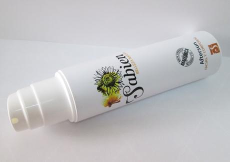 Este es el producto que estoy usando, más a menudo, en estos momentos, ya que, como podéis ver, es un aftersun, jejeje. Es perfecto para esta época de sol y calor, ya que, ahora, los rayos dañan mucho más la piel. Y, no os cuento si eres muy blanquita, jejeje. Al igual que el anterior, se presenta en un envase alargado, de plástico blanco, bastante fuerte y compacto, y que contiene 200 ml de cantidad. Le acompaña un dispensador, tipo pompa, muy cómodo, práctico e higiénico.