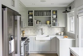 Para este hogar han escogido una bonita gama de grises, apostando por el color blanco para multiplicar la maravillosa luz natural que entra por las amplias ventanas que rodean la casa. Combina confort y elegancia con una cuidada selección de los materiales, fusionando elementos clásicos con piezas modernas. Como la lámpara de comedor y el banco de madera, o las baldosas hidráulicas de la cocina.