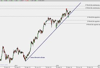 Observando el gráfico anterior se aprecia que el largo plazo viene dominado por una línea directriz alcista cuyo origen data en el mes de abril del año pasado, así se puede concluir que la tendencia alcista se encuentra arraigada y consolidada en el precio hasta nueva señal o figura de vuelta bajista.