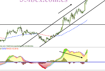 En el segundo análisis se veía una clara divergencia entre el precio y el MACD. En ese momento era complicado seguir dentro del valor, o tienes muy claro el primer objetivo y lo llevas dentro de la cabeza como un Kamikaze, o en ese momento sales disparado.