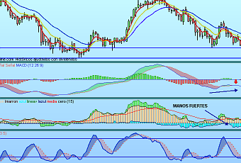 Historias aparte que no podemos demostrar, sólo figurarnos, el gráfico semanal de Sacyr, muestra como las manos fuertes han ido vendiendo, el estocástico está en zona de sobreventa, clavado sin moverse (de momento), el MACD en su histograma si muestra una divergencia alcista, marcando el posible doble suelo, pero sus líneas están cortadas a la baja, no me gusta este detalle.