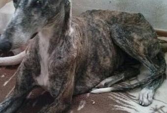 Esta preciosa galga es Saeta, fue recogida de en medio de la carretera cuando todos lo coches la sorteaban.