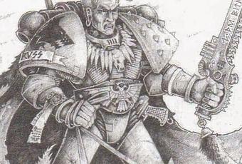 El de la imagen es,supuestamente,un boceto de Logan Grinar de John Blanche.Una de las cosas que motivo esta entrada fue el hecho de que se encontrase una armadura que se dice que es el Armadura de Russ.Se encontró en la segunda Cacería,de la que no se tiene fecha,pero en el relato de 2ª se dice exactamente el lugar donde se encontró:Un templo dedicado a Horus en un mundo en el limite del Ojo del Terror llamado Rudra.No es un nombre puesto por poner y uno de esos típicos detalles que antes abundaban mucho en las publicaciones de GW.Rudra es una divinidad hindú vedica que es un dios de las tormentas,las cacerías,los arqueros y la enfermedad.Un dios difuso,que suele compartir tantos aspectos con Shiva que algunos piensan que no es mas que Shiva con otro nombre o una versión primitiva,pero otros piensan que es un dios aparte.A Rudra se le reza,por ejemplo, para evitar que los niños enfermen y si enferman para que curen,ya que Rudra porta la enfermedad con su flechas,pero también la cura.