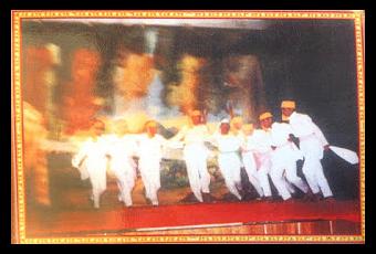 en la Foto que sigue y va adjuntada, para la felicidad de todos los Estudiantes, Profesores, Sevas, y ahora de todos nosotros, puede verse que hay 5 Imágenes de Swami...."un poco borrosas" detrás de los estudiantes danzando!