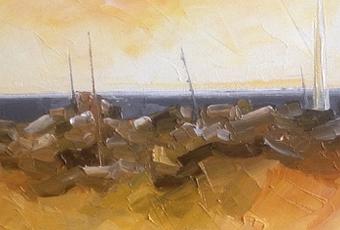 " Sailing ship ".Oil spatula canvas. 2016.0.25 x 0.25 cm....