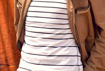 Desde que compró este pantalón de la nueva temporada de Massimo Dutti, no veía el momento de estrenarlo, y apostó por un estilo navy con camiseta a rayas, sus adorados náuticos Fluchos y cazadora en color tostado. ¿Que os parece?