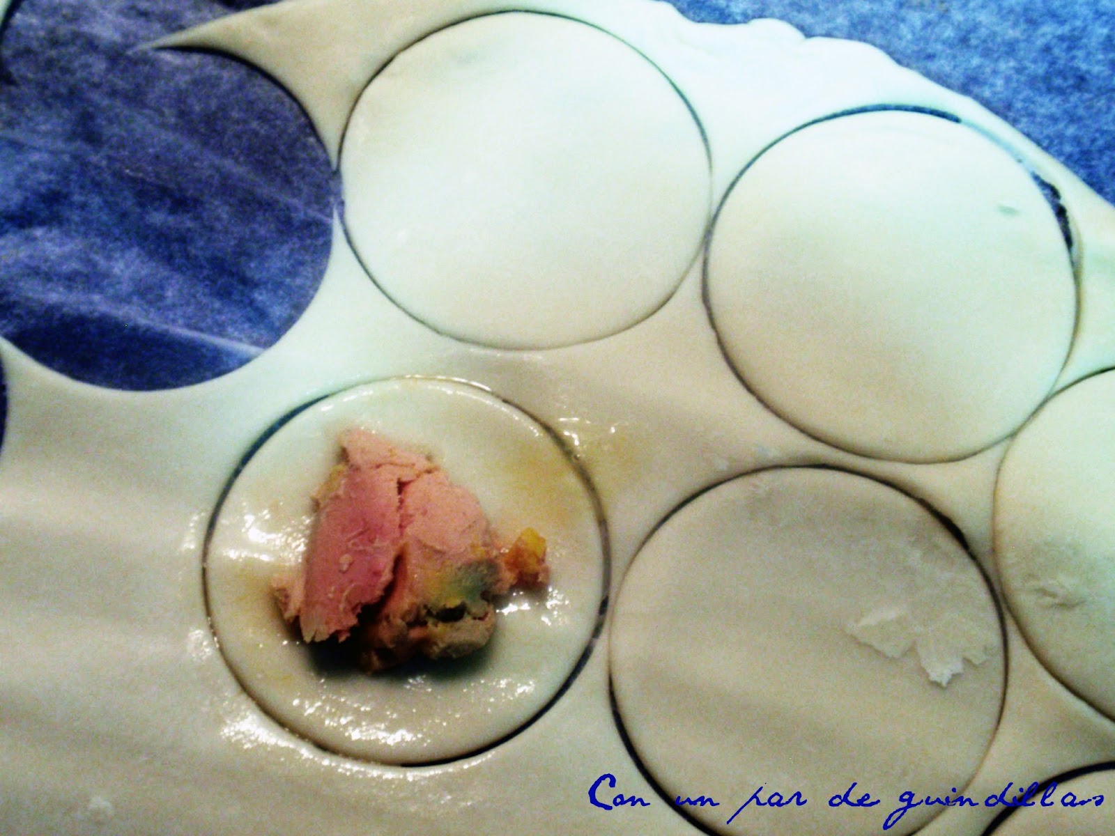 1.- Con un corta pastas le damos la forma deseada (los de paté son los redondos y los de chistorra alargados).