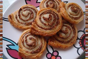 Enrollar la masa sobre si misma hasta hacer un rollito. Cortarla en rebanadas y colocar estas sobre la bandeja de horno. Untar con huevo batido.