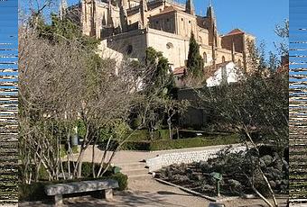 En la ciudad de Salamanca, muy cerca de la Catedral, flanqueando la entrada al patio chico de la Catedral Nueva, encontramos un pequeño jardín de “juniperus”, acantos y azaleas, es un precioso huerto de inspiración musulmana que se sitúa sobre los restos de la antigua muralla de la ciudad y desde el cual se divisa una magnífica panorámica de la orilla del río Tormes. Un rincón fresco y romántico conocido como el “Huerto de Calisto y Melibea”, donde dice la tradición se sucedieron los encuentros amorosos de los dos personajes de la novela de Fernando de Rojas, “La Celestina”. Es aquí, en este pequeño jardín, donde podemos comenzar este paseo romántico por la bella capital salmantina.