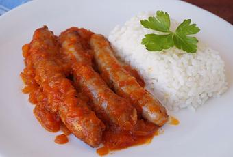 Echamos las salchichas y las dejamos hasta que la salsa esté a nuestro gusto, si queda muy espesa, podemos poner mas agua o caldo.