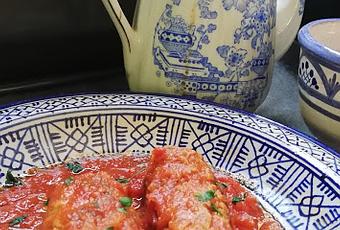 Para la salsa de tomate rehogamos en el aceite el ajo chafado, retiramos del fuego y echamos el laurel. Volcamos el tomate y aderezamos con la pimienta,los cominos molidos, el perejil picado, el azúcar y la sal. Volvemos a poner al fuego y dejamos que vaya perdiendo el exceso de agua. Ajusta los sabores y si te gustan más potentes, te animas y pones algo más.
