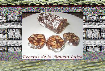 - Troceamos las galletas y las almendras en trocitos pequeños (podemos prescindir de las almendras si el presupuesto va ajustado). - En un cazo ponemos a fuego suave la nata, el chocolate troceado y la mantequilla, dejamos que se derrita mientras vamos mezclando, se hará como una crema, incorporamos entonces el licor. - Retiramos del fuego y lo añadimos a las galletas y almendras, mezclamos todo bien. - Preparamos un buen trozo doble de film de cocina (o varios trozos según queramos hacer los salchichones), en el centro ponemos la masa, le vamos dando forma a la vez que enrollamos, cerramos bien los extremos. - Después envolvemos el salchichón con papel de aluminio, ponemos en el frigorífico durante varias horas (mejor preparar de un día para otro), hasta que se endurezca. - Una vez esté duro, retiramos el papel de aluminio y el film, antes de servir espolvoreamos con azúcar glas para simular el moho blanquecino de la piel del salchichón, ya solo queda cortar unas lonchas y… buen provecho.