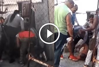 En el audiovisual se puede apreciar como agentes de la Seguridad del Estado y policías golpean a un hombre que se encontraba acorralado sin poder escapar de la golpiza que le estaban propinando.