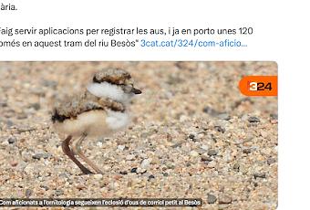 En el TeleNoticies de TV3, 3cat.cat ha publicado una noticia sobre la observación de aves en el río Besòs, en la que aparezco comentando mi rutina registrando especies mediante aplicaciones. La pieza de la periodista Judit Batlle en la que destaca el nacimiento de un corriol petit (Chorlitejo chico) en la playa del Fòrum y el seguimiento de un grupo de personas interesadas en la ornitología.